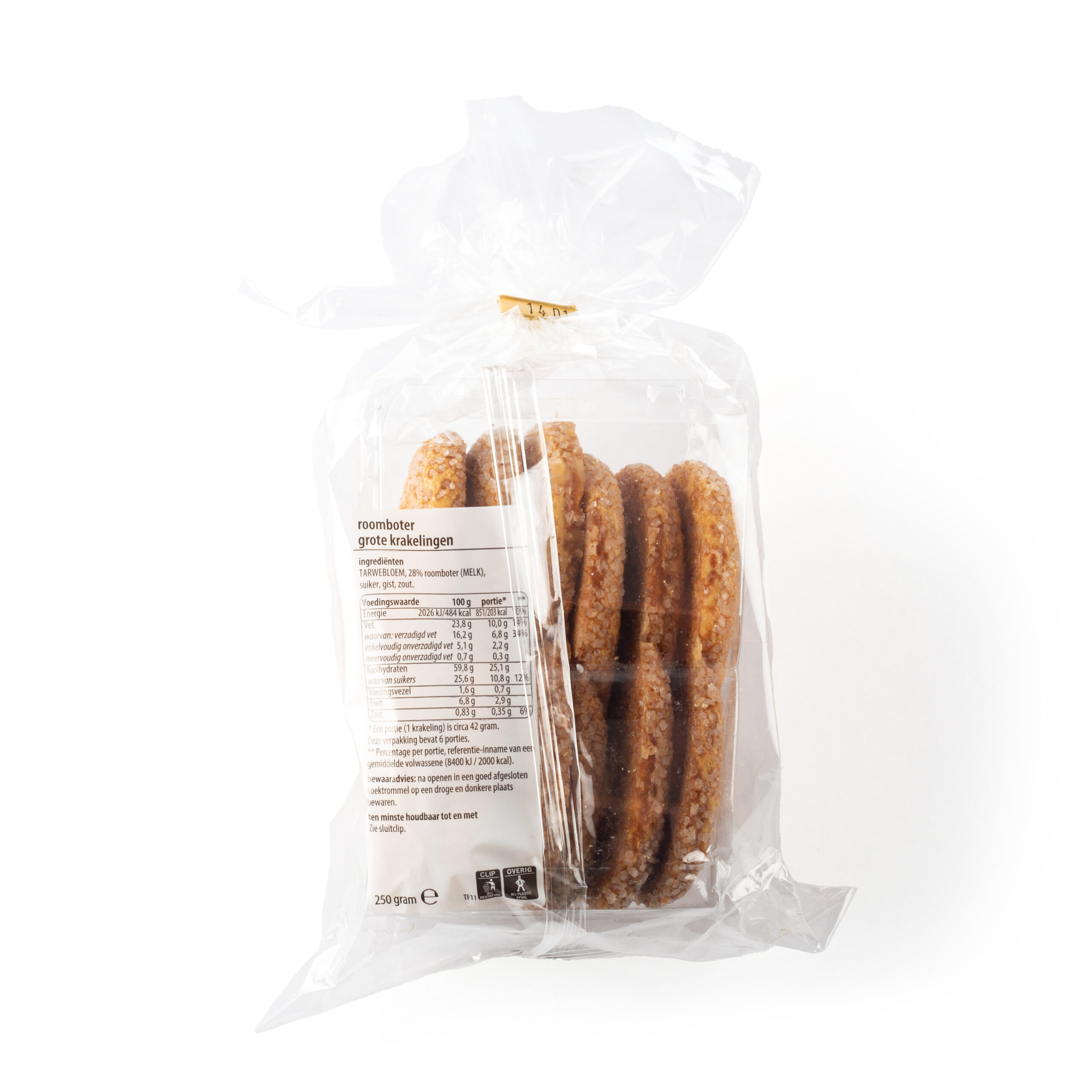 Ingrediënten: TARWEBLOEM, 28% roomboter (MELK), suiker, gist, zout.