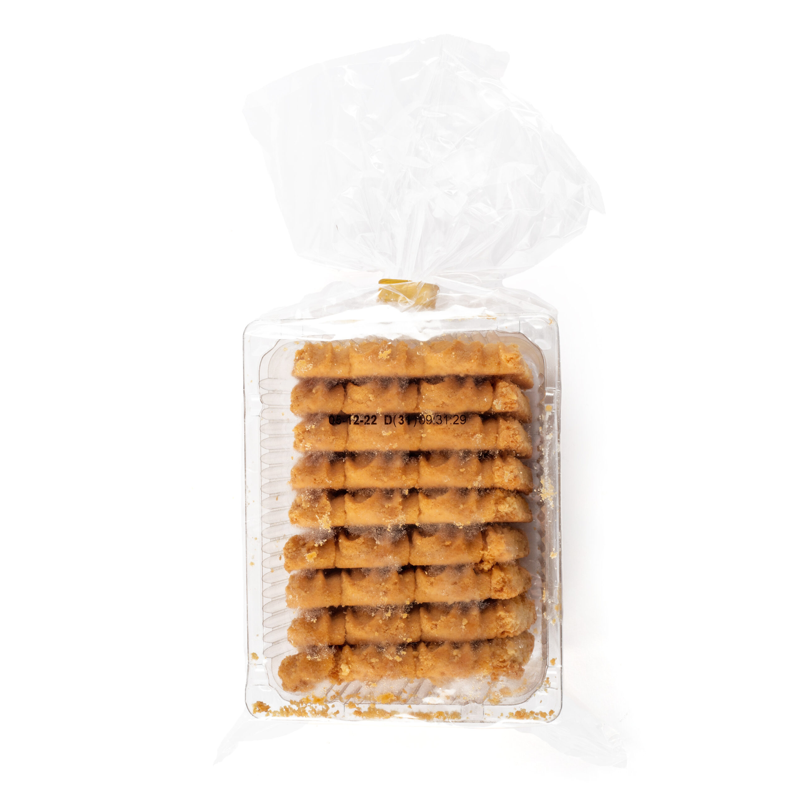 Ingrediënten: TARWEBLOEM, 35% roomboter (MELK), suiker, weipoeder (MELK), invertsuiker, zout, dextrose, gemodificeerd aardappelzetmeel, MAGERE MELKPOEDER, rijsmiddel: E500, kleurstof: carotenen, natuurlijke aroma’s (MELK), maiszetmeel.